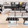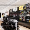 Ở giữa là khu vực phụ kiện như ốp điện thoại. Bên phải sẽ là loa với đủ kích thước, míc và tai nghe. Các kệ được đặt sao cho lối đi vẫn thoải mái và thuận tiện cho khách hàng mua sắm.
