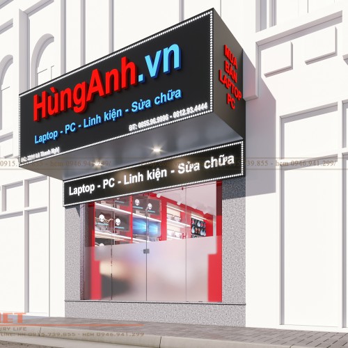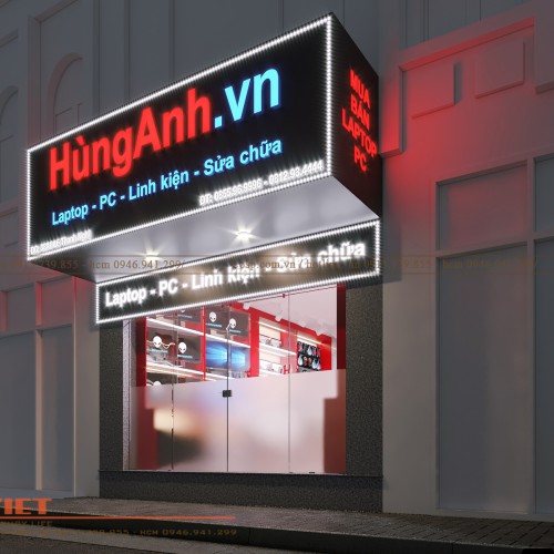 Thiết kế mặt tiền shop máy tính Hùng Anh