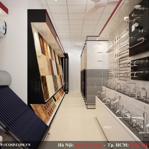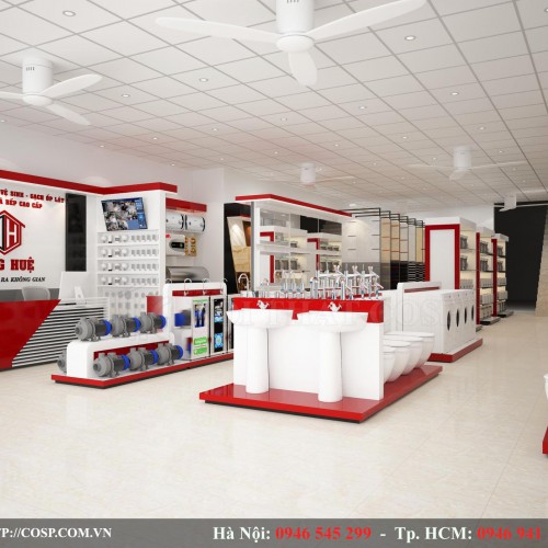 Chi tiết dự án thiết kế showroom thiết bị vệ sinh Hùng Huệ