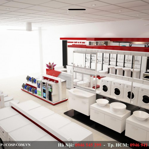 Anh Hùng có nhu cầu mở showroom thiết bị vệ sinh tại Phú Xuyên (Ngoại thành Hà Nội). Qua tìm hiểu trên mạng anh tìm đến Nội thất Cosp và yêu cầu thiết kế.