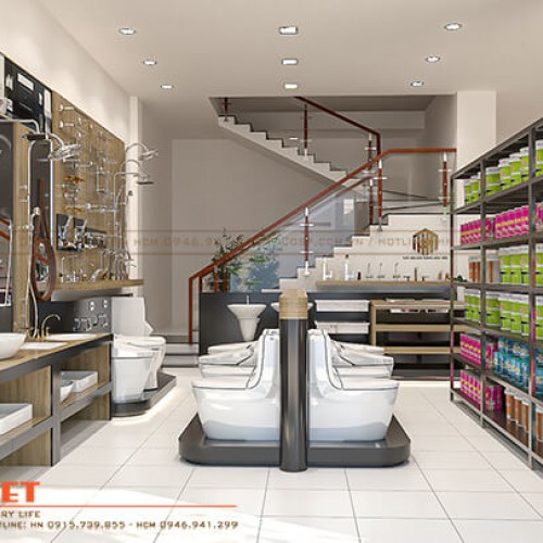 Bằng kinh nghiệm và sự tài hoa của các kiến trúc sư, chúng tôi đã mang đến sự thay đổi ngoạn mục cho cửa tiệm nhờ mẫu thiết kế nội thất showroom thiết bị vệ sinh đơn giản nhưng vô cùng hiện đại, chuyên nghiệp. Đây thực sự là một gợi ý tuyệt vời với những cơ sở kinh doanh có mặt bằng hạn chế. Vậy thì còn chờ gì mà chưa liên hệ ngay với Penviet để được tư vấn những giải pháp hoàn hảo cho không gian của bạn!