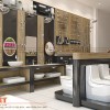 Tại đây, chúng tôi cũng khéo léo lồng ghép nhận diện thương hiệu với Logo Mica uốn nổi, mặt Alu vàng gương, tên cửa hàng bằng Mica dẹt cắt CNC trên nền vách thạch cao khung xương được sơn bả hoàn thiện.