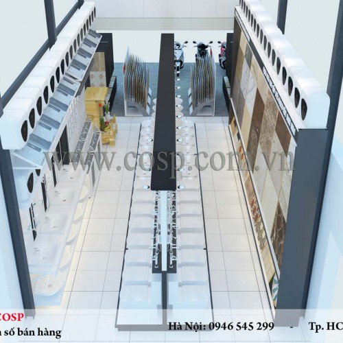 Cửa hàng vật liệu xây dựng với phong cách hiện đại, tiết kiệm không gian sử dụng một cách tốt nhất đảm bảo có thể trưng bày giới thiệu nhiều sản phẩm tốt nhất cho khách hàng lựa chọn.