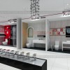 Màu đỏ được sử dụng để điểm tô thêm màu sắc cho không gian thiết kế shop thêm phần sinh động, tươi mới, tránh cảm giác đơn điệu khi chỉ sử dụng hai màu đen và trắng.