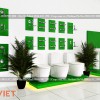 Thiết kế kệ trưng bày sản phẩm với màu xanh lá độc lá, bắt mắt