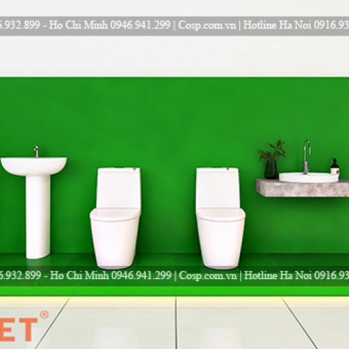 Sở hữu mặt bằng có diện tích rộng 120m2, thiết kế kệ trưng bày thiết bị vệ sinh trong showroom của anh Quỳnh lựa chọn tone màu xanh lá vô cùng nổi bật. Các sản phẩm thiết bị vệ sinh thường có màu trắng hoặc màu bạc, đây là những màu sắc dễ bị chìm vào không gian, chính vì vậy sắc xanh nổi bật sẽ làm tôn lên nét đẹp của sản phẩm một cách hiệu quả.