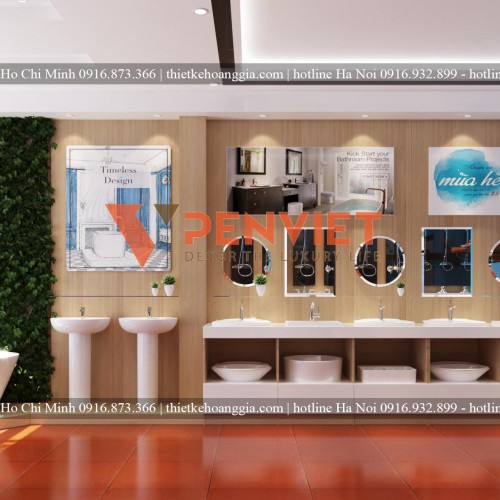Thiết kế khu vực trưng bày thiết bị vệ sinh gọn gàng, hợp lý