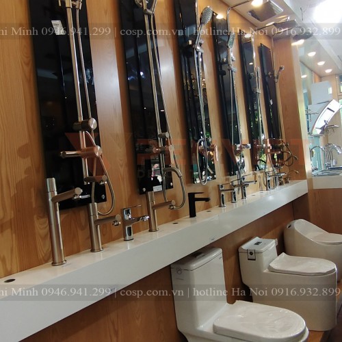 Hình ảnh thực tế khu vực trưng bày vòi tắm của cửa hàng