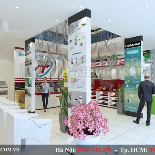 Thiết kế nội thất showroom thiết bị vệ sinh, vật liệu xây dựng tại Vĩnh Phúc của anh Tiến được đội ngũ KTS của COSP tư vấn và thiết kế.