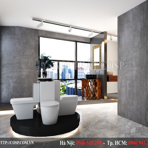 Với diện tích vô cùng lớn, chúng tôi lựa chọn phong cách thiết kế sang trọng và trang nhã tôn lên vẻ cuốn hút và đẳng cấp của showroom thiết bị vệ sinh anh Trí. Màu sắc chủ đạo của showroom thiết bị vệ sinh là trắng và xám thời thượng.