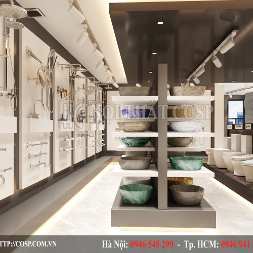 Những nét chính của dự án thiết kế nội thất showroom thiết bị vệ sinh 150m2 của anh Trí tại Hà Tĩnh