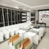 Bàn làm việc màu với tông màu xám chính được bố trí rất hợp lý là một trong những điểm nhấn của thiết kế nội thất showroom Phú Minh Thảo.