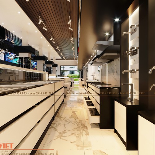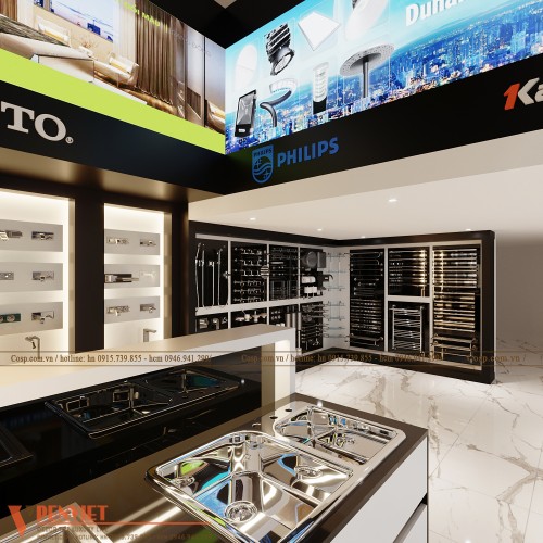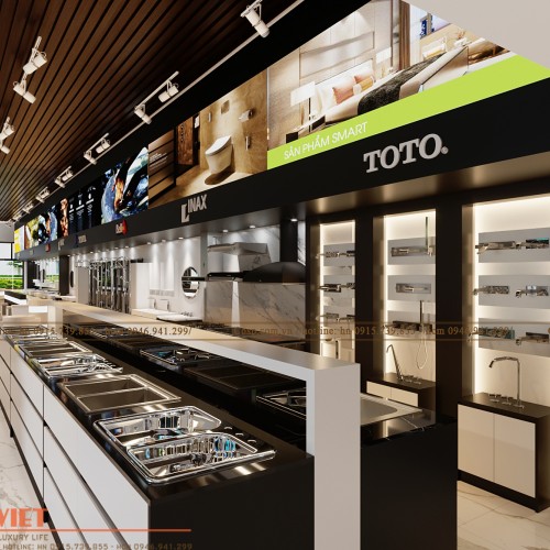 Thiết kế khu vực trưng bày chậu rửa tạo showroom Cường Lan