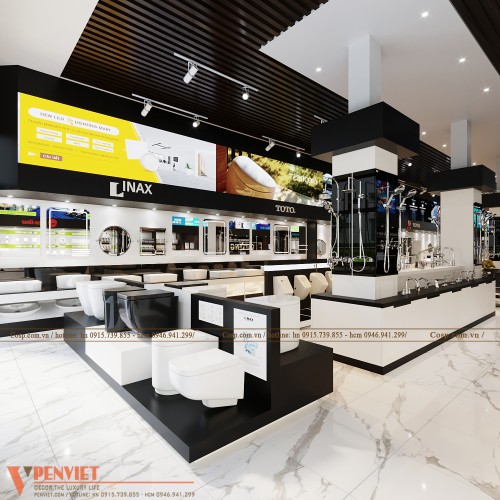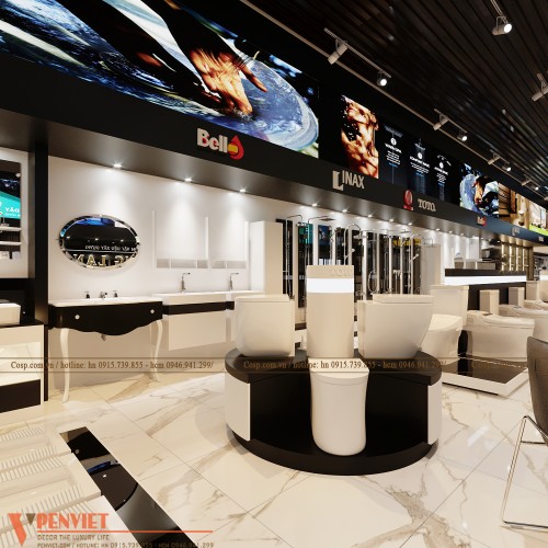 Trên đây là những hình ảnh thiết kế showroom thiết bị vệ sinh Cường Lan. Nếu các bạn cũng đang tìm một đơn vị thiết kế shop uy tín và chuyên nghiệp, hãy liên hệ với Nội thất Penviet nhé.