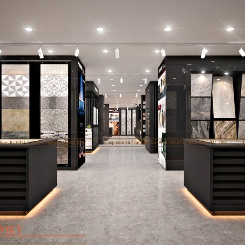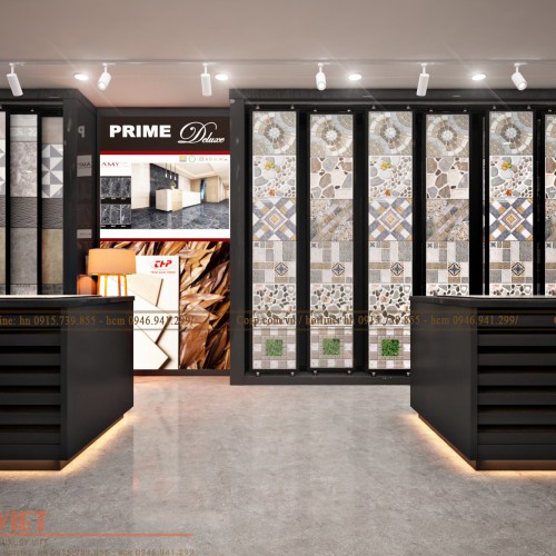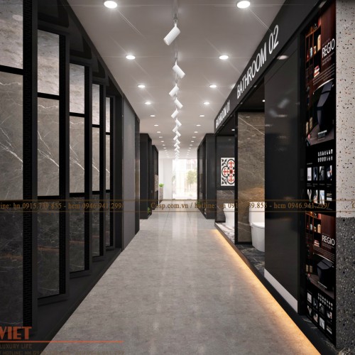 Gạch ốp lát có rất nhiều loại như gạch sản xuất nội địa, gạch nhập khẩu, chất lượng, giá cả,... Để thiết kế showroom vật liệu xây dựng trở nên chuyên nghiệp, chúng tôi đã phân loại ra các khu vực riêng như dùng cho nhà tắm, phòng khách, dùng để trang trí mặt tiền, gạch bông, gạch thông gió…