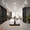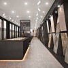 Khi lựa chọn gam màu đen làm chủ đạo, chúng tôi đã nghiên cứu để kết hợp với ánh sáng sao cho mang lại hiệu quả thẩm mỹ nhất. Bởi nếu không cung cấp đủ ánh sáng, thiết kế showroom vật liệu xây dựng sẽ trở nên bí bách và chật chội. Để mang tới sự chuyên nghiệp và tinh tế cho không gian, Penviet kết hợp giữa hệ thống đèn downlight âm trần và hệ đèn spotlight chiếu sáng điểm nhấn mà chủ đầu tư mong muốn.
