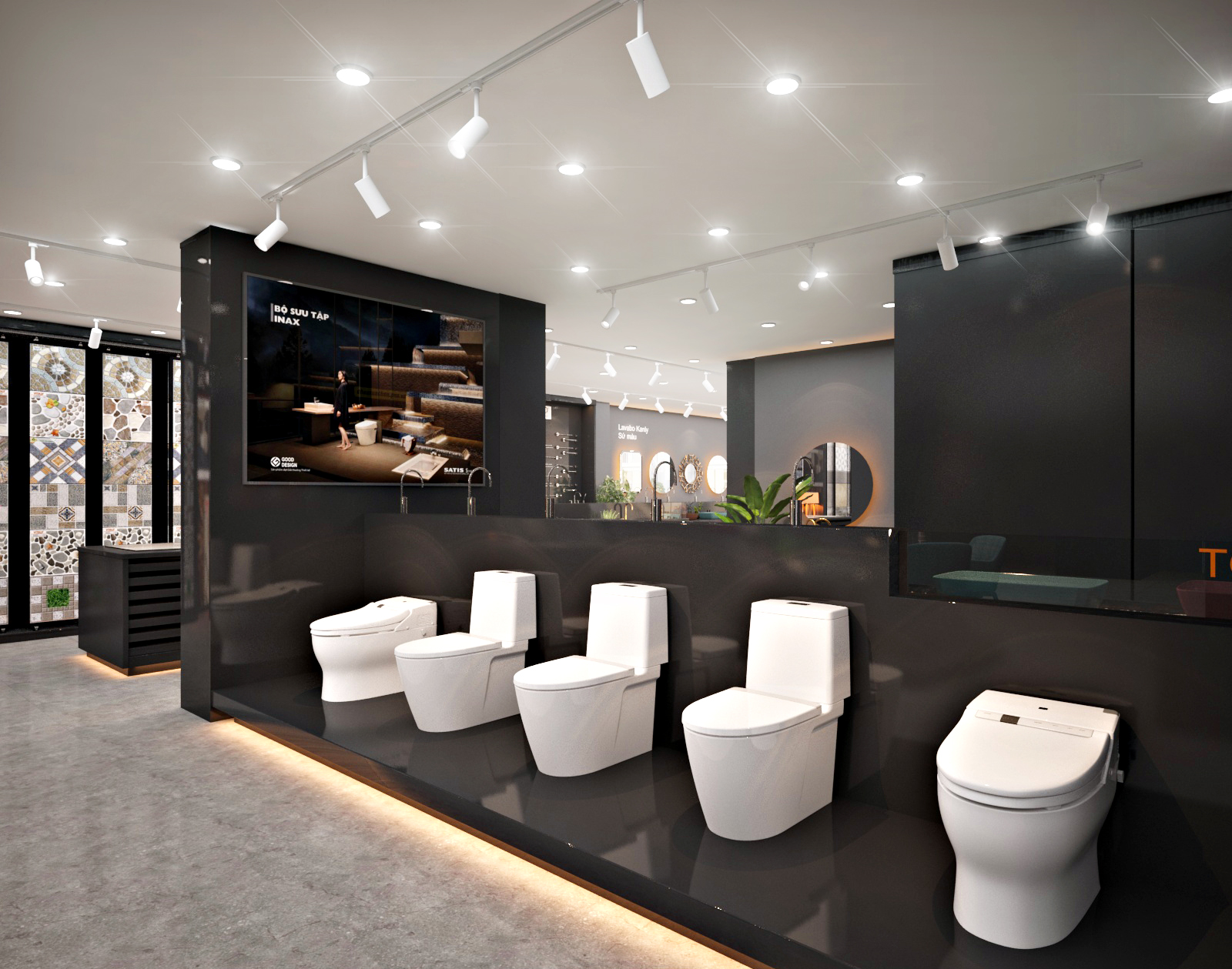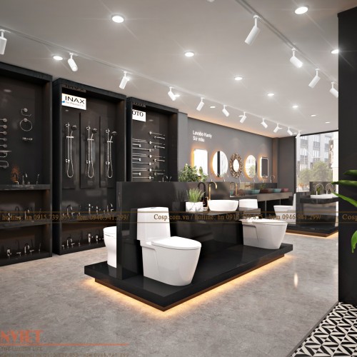 Mỗi loại sản phẩm đều được phân chia thành những khu vực riêng để khách hàng thuận tiện tham quan và lựa chọn được mặt hàng phù hợp. Tiếp nối hệ tủ lavabo là các tủ trưng bày vòi sen, vòi rửa với những kích thước, xuất xứ khác nhau. Các hệ tủ này được chia ngăn với chiều cao phù hợp sản phẩm và không có cánh để mang lại trải nghiệm chân thực nhất cho khách hàng.