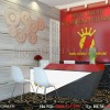 Phần nội thất được KTS Tuấn tư vấn và thiết kế theo ý tưởng của chủ cửa hàng để có được môt mặt tiền buôn bán tiện lợi và hợp thời trang nhất. Sử dụng gỗ MDF phun sơn O7 đảm bảo bề mặt sáng bóng, toát lên vẻ hiện đại và sang trọng. Với chất liệu gỗ công nghiệp cao cấp giúp thời gian sử dụng lâu dài, khả năng chống ẩm chống mối mọt tốt, do được xử lý kỹ trong quá trình sản xuất. Kích thước sản phẩm được tính toán kỹ lưỡng để phù hợp cho nhân viên làm việc hiệu quả, giao tiếp với khách hàng dễ dàng. Vách logo màu đỏ nổi bật thương hiệu của cửa hàng, kết hợp đèn led tạo nen sự thu hút đối với khách hàng tham quan.