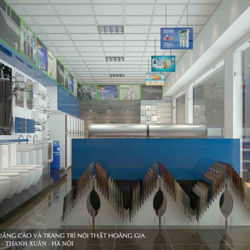 Với diện tích 70m2, việc thiết không gian cửa hàng điện máy - thiết bị vệ sinh Hùng Cường cần phải đảm bảo được sự khoa học, thông minh trong bố cục đáp ứng được nhu cầu của khách hàng cũng như tạo được cảm giác rộng rãi, thuận tiện cho của hàng.