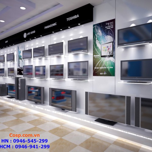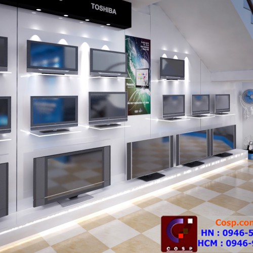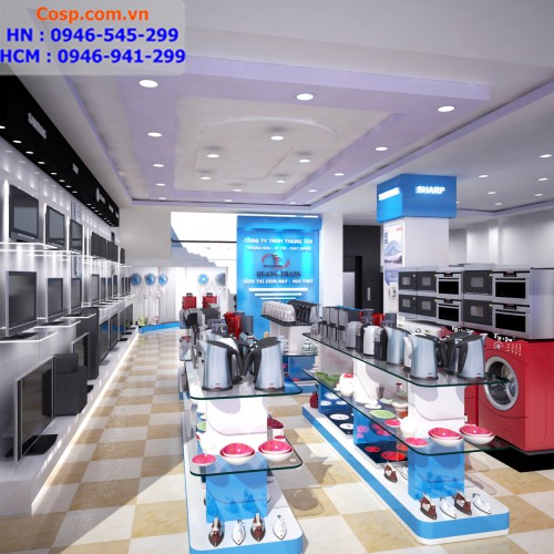 Thiết kế nội thất siêu thị điện máy đang dần trở thành thế mạnh hàng đầu của Nội thất Cosp. Điện thoại di động, điều hoà, tivi, tủ lạnh như một sản phẩm thông dụng và được bày bán ở khắp nơi, việc trưng bày sản phẩm sao cho khách hàng dễ dàng xem và mua sắm là điều Hoàng Gia hướng tới.