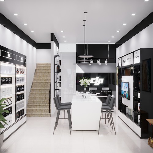 Đối với sản phẩm chính flycam là sản phẩm công nghệ cao, các kiến trúc sư Cosp đã thiết kế không này vô cùng hiện đại và cao cấp. Hãy cùng tham khảo không gian nội thất shop này nhé.