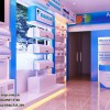 Nội thất của cửa hàng gồm: Quầy thu ngân, vách logo, bục sát tường và hộp đèn.