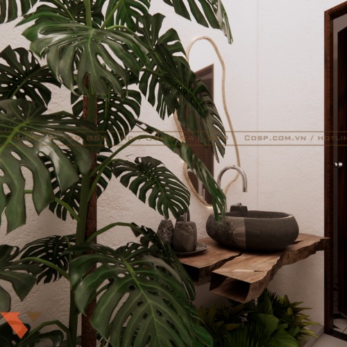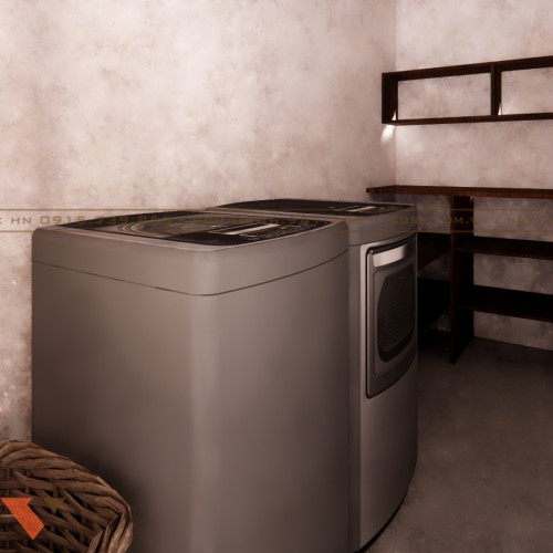 Bên cạnh đó, khu phụ trợ được đặt gọn về phía sau cầu thang, tách biệt hoàn toàn khu dịch vụ. Cách bố trí này không ảnh hưởng đến sự riêng tư cũng như lưu thông chung, mà vẫn đảm bảo sự kín đáo cần thiết.