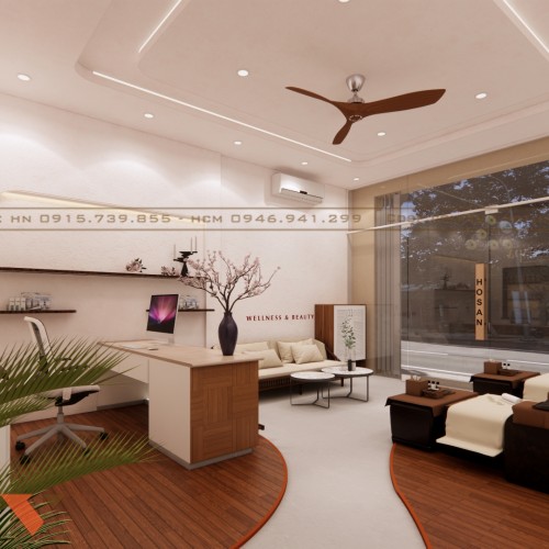 Hiện nay các mô hình spa dưỡng sinh kết hợp giữa y học cổ truyền và thẩm mỹ hiện đại đã trở thành lựa chọn yêu thích của nhiều khách hàng. Nổi bật là mẫu thiết kế spa Hosan được đầu tư bài bản từ hình ảnh mặt tiền đến công năng bên trong. Dự án có diện tích vừa phải nhưng được bố trí khoa học và tận dụng tối đa công năng. Hãy cùng khám phá các hạng mục thiết kế nổi bật bên trong công trình này qua nội dung dưới đây.