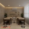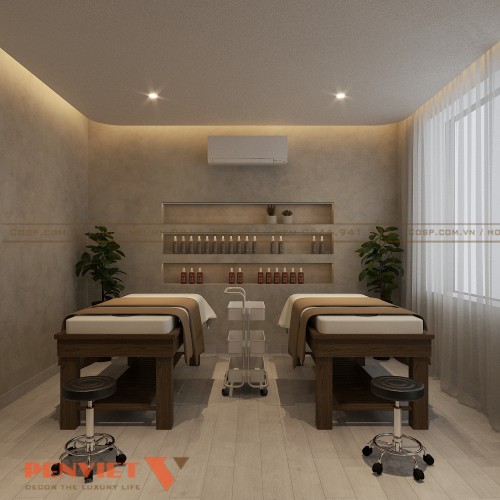 Không gian phòng massage được trang trí thêm bằng các bức tranh nghệ thuật, cây xanh nhỏ, và ánh sáng dịu nhẹ từ đèn LED âm trần. Tất cả những yếu tố này tạo nên một bầu không khí hài hòa, giúp khách hàng dễ dàng thư giãn sau một ngày làm việc căng thẳng.