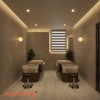 Bên cạnh các khu chức năng chính, spa còn thiết kế riêng khu vực chờ và thư giãn cho khách hàng. Tại đây, các ghế sofa màu trắng hoặc kem được bố trí ở góc yên tĩnh, kèm theo những chiếc bàn nhỏ trang nhã. Không gian này mang lại sự thoải mái tối đa, cho phép khách hàng thư giãn với một tách trà hoặc nước detox trong lúc chờ sử dụng dịch vụ.