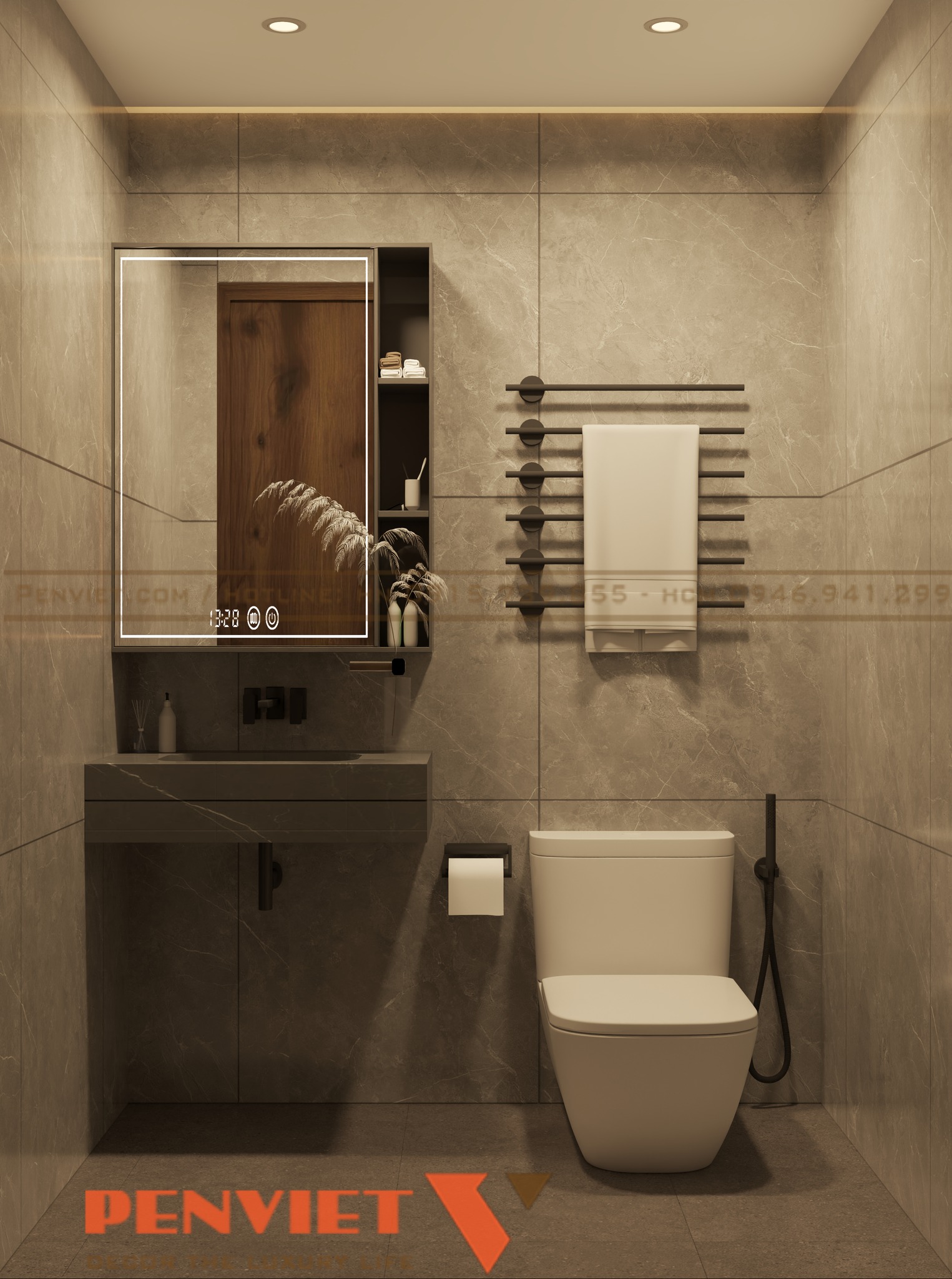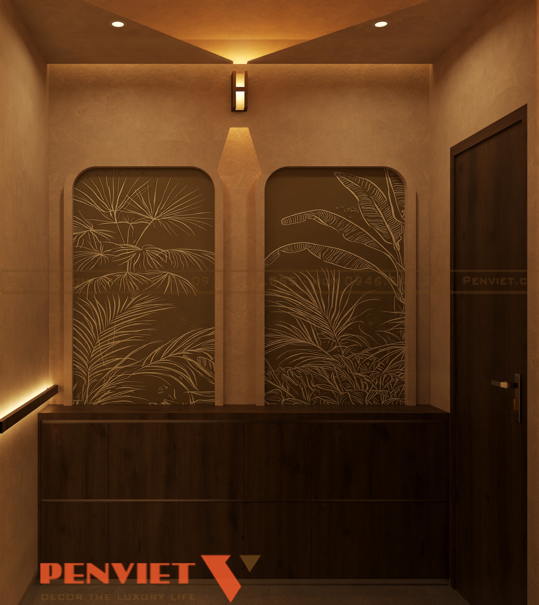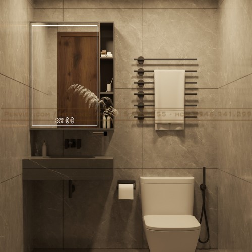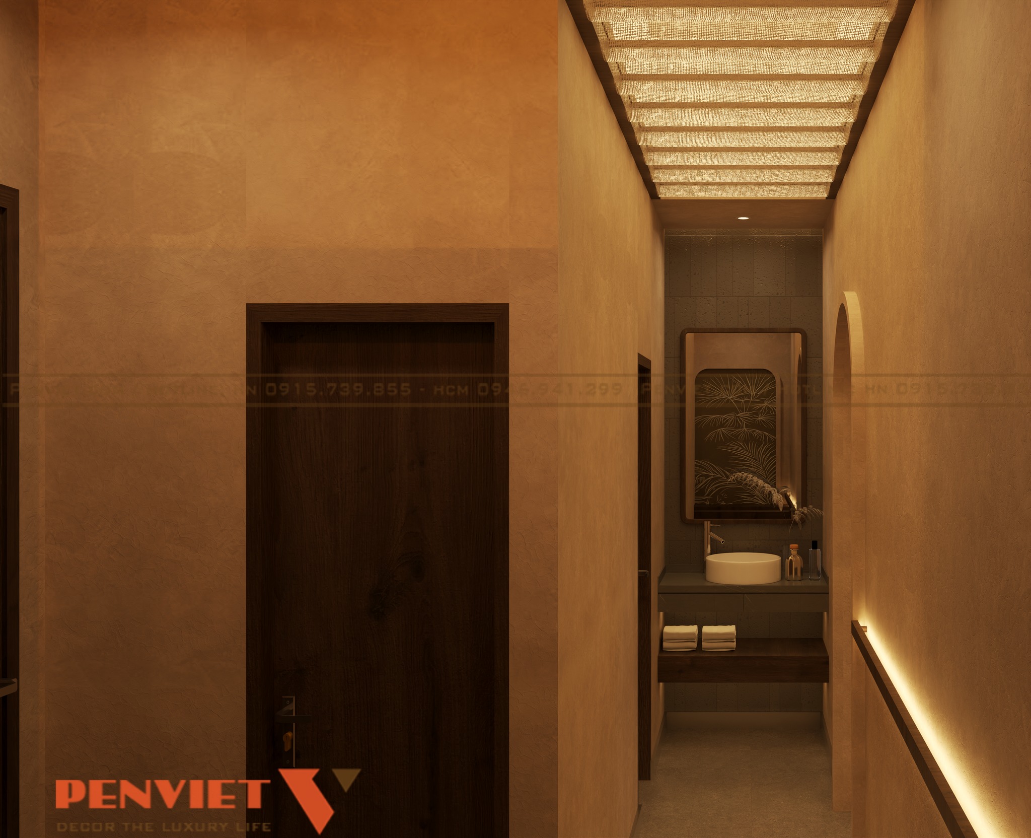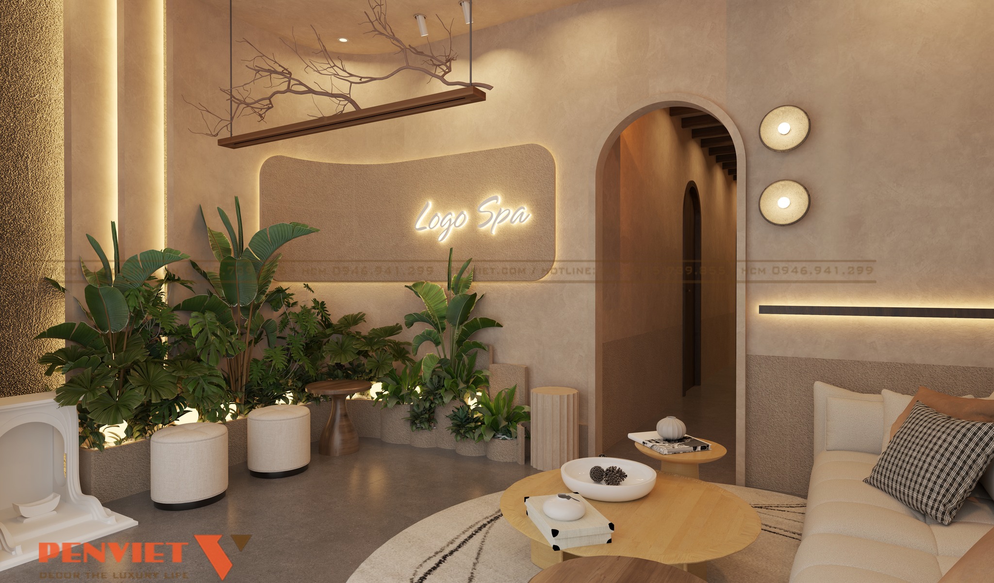 Với diện tích 127,5m2, dự án được xây dựng theo phong cách spa trị liệu thiên về sự tĩnh lặng và cân bằng. Tông màu chủ đạo là màu be, nâu gỗ và ánh sáng vàng dịu. Sự kết hợp này mang lại cảm giác ấm áp và gần gũi.