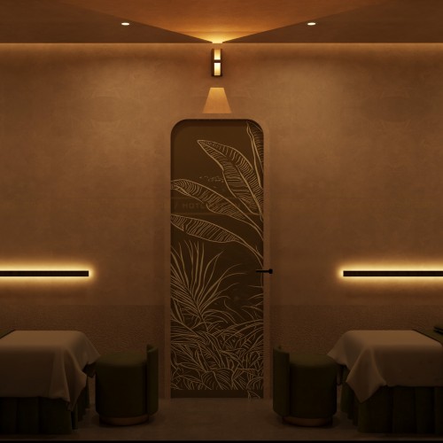 Các vật liệu tự nhiên được sử dụng xuyên suốt trong không gian. Gỗ, đá, cây xanh và ánh sáng gián tiếp tạo nên bầu không khí thư giãn. Đây là yếu tố quan trọng trong các mô hình spa trị liệu hiện đại.