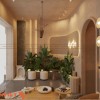 Lối đi vào khu trị liệu được thiết kế dạng vòm cong. Hình khối mềm mại giúp không gian trở nên nhẹ nhàng hơn. Đồng thời tạo sự tách biệt rõ ràng giữa khu tiếp khách và khu dịch vụ.