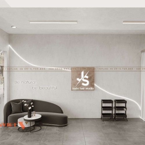 Thiết kế salon tóc Joshi không chỉ thể hiện sự chuyên nghiệp và đẳng cấp mà còn mang đến cảm giác thân thiện và gần gũi. Từ bảng hiệu cho đến đồ nội thất hay các chi tiết trang trí nhỏ bên trong tất cả đều được chăm chút tỉ mỉ, tạo nên một không gian ấn tượng và thu hút khách hàng ngay từ cái nhìn đầu tiên.