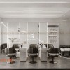 Phía sau quầy lễ tân là các ghế cắt tóc được bố trí ngay ngắn theo hàng lối, tạo không gian làm việc thoải mái cho các stylist và thuận tiện cho khách hàng. Các ghế ngồi được bọc da cao cấp, mang lại cảm giác êm ái và thoải mái cho khách hàng trong suốt quá trình làm tóc. Phía trên các ghế là những tấm gương lớn, giúp mở rộng không gian và tạo cảm giác rộng rãi.