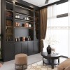 Bên cạnh khu tiếp đón là hệ tủ trưng bày các dòng sản phẩm chăm sóc sức khỏe và làm đẹp được spa sử dụng và phân phối. Tủ gỗ sơn đen nhám hiện đại, cánh kính trong suốt kết hợp hệ thống đèn LED âm tủ khiến sản phẩm trở nên nổi bật.