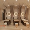 Bên cạnh các giường massage, spa còn có khu vực dành riêng cho dịch vụ massage chân. Thiết kế ở khu vực này vẫn tiếp tục duy trì phong cách hài hòa và màu sắc đồng bộ của spa. Ghế massage chân với thiết kế rộng rãi, có chỗ để chân thoải mái tạo thư giãn cho khách hàng.