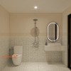 Nhà vệ sinh của spa được thiết kế chú trọng đến chi tiết, nhằm đảm bảo không gian sạch sẽ. Màu sắc nhã nhặn và các vật dụng sắp xếp gọn gàng, mang lại sự hài lòng khi sử dụng. Bồn rửa tay hiện đại kết hợp với gương lớn giúp không gian trở nên thoáng đãng. Đèn LED được bố trí hợp lý cung cấp đủ ánh sáng cho khách hàng khi có nhu cầu cá nhân.