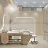 Nơi đây bố trí hai giường massage song song, tạo cảm giác đồng bộ và thoải mái cho khách hàng. Gam màu trắng kem tiếp tục được sử dụng làm chủ đạo trong nội thất. Bên cạnh đó là sự kết hợp với ánh sáng vàng dịu nhẹ từ các nguồn sáng gián tiếp trên tường, trần nhà.