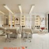 Ánh sáng là yếu tố rất quan trọng trong không gian spa ALEXA Beauty & Academy. Đèn LED âm trần kết hợp với dải đèn LED hắt sáng ở các kệ trưng bày, tạo hiệu ứng ánh sáng đều và ấm cúng. Trần nhà được thiết kế đơn giản với các khối dầm sơn trắng kết hợp hệ thống rèm treo tạo cảm giác nhẹ nhàng, bồng bềnh.