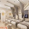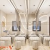 Vật liệu sử dụng trong phòng trị liệu ưu tiên bề mặt mềm, màu sắc ấm áp và dễ vệ sinh. Ánh sáng trần được bố trí đều, tránh gây chói mắt trong quá trình trị liệu. Đối với chủ đầu tư đang cải tạo spa quy mô vừa, đây là giải pháp cân bằng giữa chi phí và hiệu quả sử dụng. Không gian trị liệu trở thành điểm nhấn cốt lõi của toàn bộ dự án.
