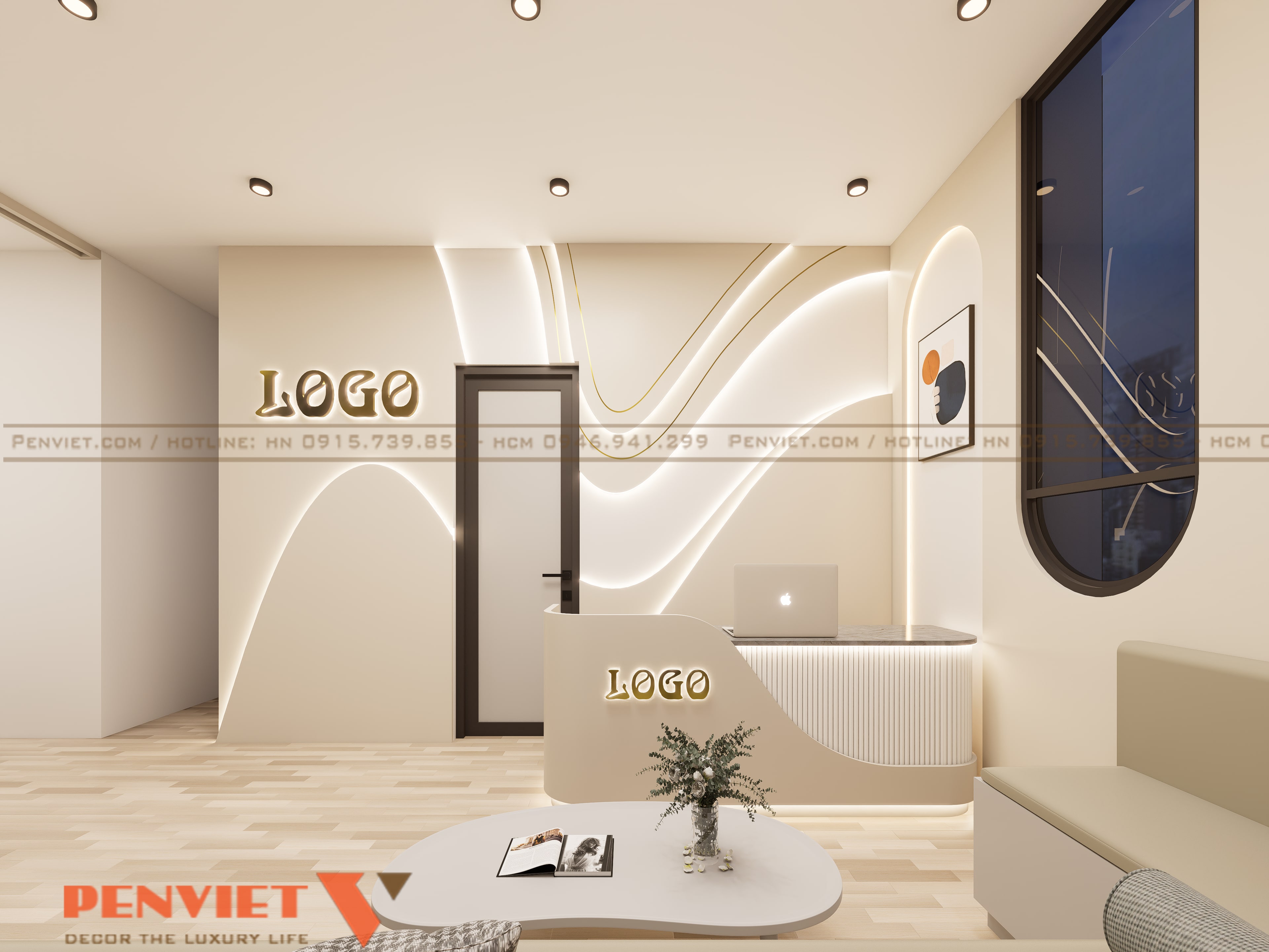 Khu lễ tân được thiết kế gọn gàng với quầy tiếp đón bo cong mềm mại, tạo cảm giác thân thiện ngay khi khách bước vào. Ánh sáng gián tiếp kết hợp hình khối kiến trúc cong giúp không gian trở nên sang trọng nhưng không nặng nề. Đây là khu vực đóng vai trò quan trọng trong việc xây dựng hình ảnh thương hiệu spa. Chủ đầu tư có thể dễ dàng tạo thiện cảm và sự tin tưởng từ khách hàng mới.
