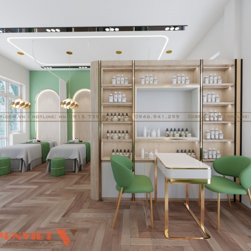 Thiết kế nội thất spa Beauty có sự kết hợp hoàn hảo giữa tính thẩm mỹ và công năng. Từ khu vực lễ tân, kệ trưng bày sản phẩm, đến phòng massage của spa Beauty đã tạo nên một không gian lý tưởng để khách hàng thư giãn và chăm sóc bản thân. Hãy liên hệ PenViet nếu quý khách muốn sở hữu không gian kinh doanh ấn tượng như trên.