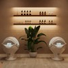 Các mảng tường được trang trí bằng tranh nghệ thuật và chi tiết tạo hình mang tính biểu tượng. Thiết kế này giúp không gian phòng trị liệu không bị đơn điệu mà vẫn giữ được sự yên tĩnh cần thiết. Những bức tranh chủ đề thiên nhiên và nến tạo cảm giác thư giãn về mặt thị giác. Đây là cách nâng cao trải nghiệm khách hàng mà không cần đầu tư quá nhiều chi phí.