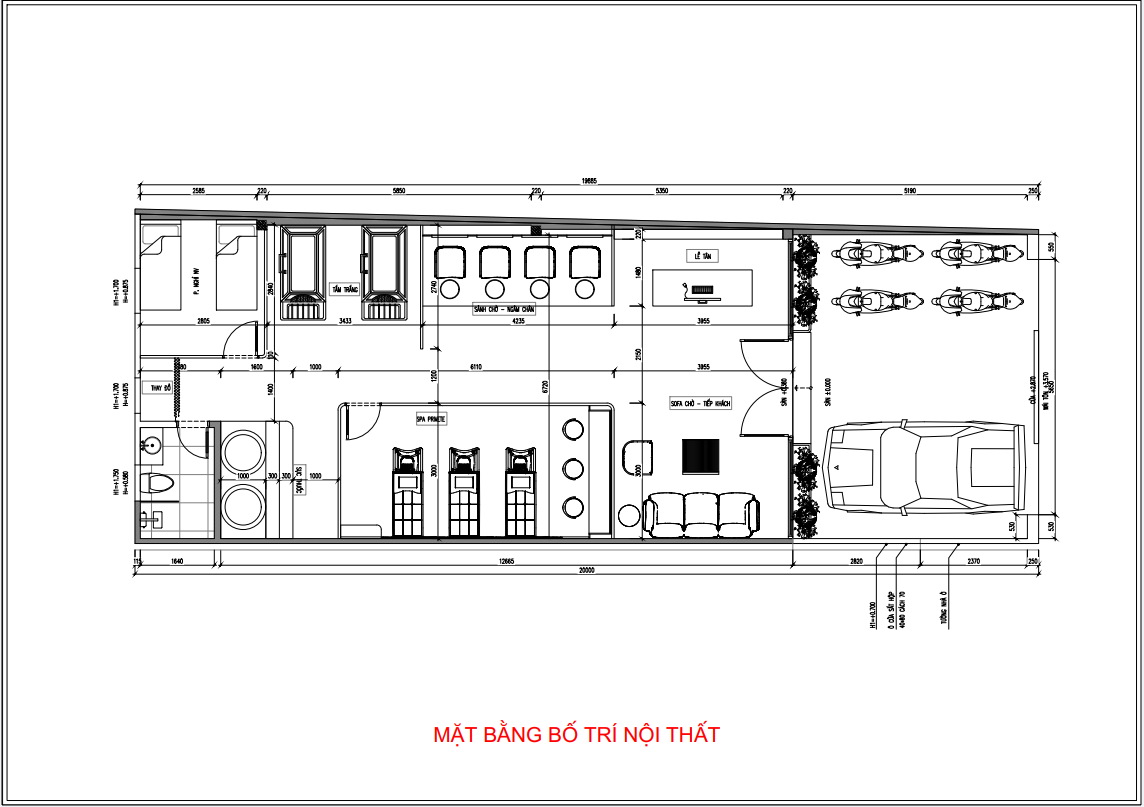 Dự án thiết kế m spa chị Phú tại Đức Thọ, Hà Tĩnh là phương án cải tạo spa tiêu biểu, kết hợp hài hòa giữa thẩm mỹ, công năng và trải nghiệm trị liệu. Trên diện tích 100m2, thiết kế đã giúp chủ đầu tư Dương Thị Phú sở hữu không gian spa chuyên nghiệp, thư giãn và dễ vận hành.