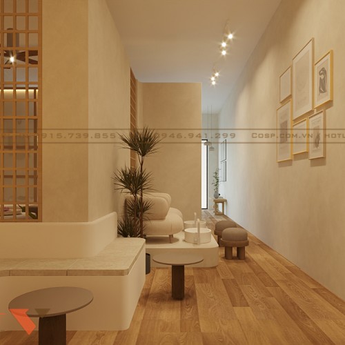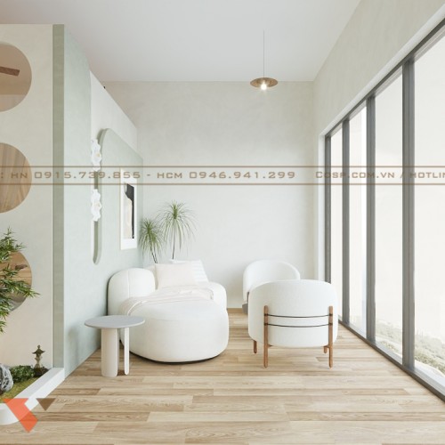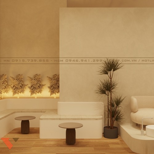 Không gian spa MOON mang phong cách tối giản, nhẹ nhàng nhưng vẫn đảm bảo sự tinh tế. Các gam màu trung tính sử dụng như be, nâu nhẹ, xám xanh làm chủ đạo tạo cảm giác ấm áp và thư thái cho khách hàng ngay từ khi bước chân vào spa.