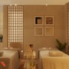 Vách ngăn mây tre là điểm nhấn ấn tượng giúp không gian spa trở nên thông thoáng, nhẹ nhàng và gần gũi với thiên nhiên. Chất liệu tự nhiên này không chỉ tạo sự mềm mại cho tổng thể kiến trúc mà còn giúp phân chia khu vực tinh tế, không gây cảm giác chật chội. Với màu sắc ấm áp và họa tiết đan thủ công, vách ngăn mây tre mang lại sự mộc mạc, thanh lịch nhưng vẫn rất hiện đại.