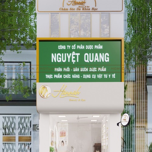 Biển bảng quảng cáo của spa Hannah được thiết kế tinh tế và hiện đại, mang đến một ấn tượng mạnh mẽ và chuyên nghiệp ngay từ cái nhìn đầu tiên. Đây là sự kết hợp giữa màu sắc, chất liệu và bố cục để tạo nên một không gian mặt tiền hấp dẫn.