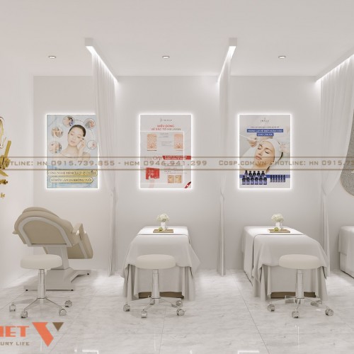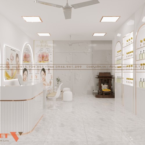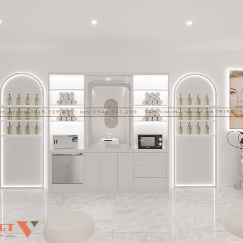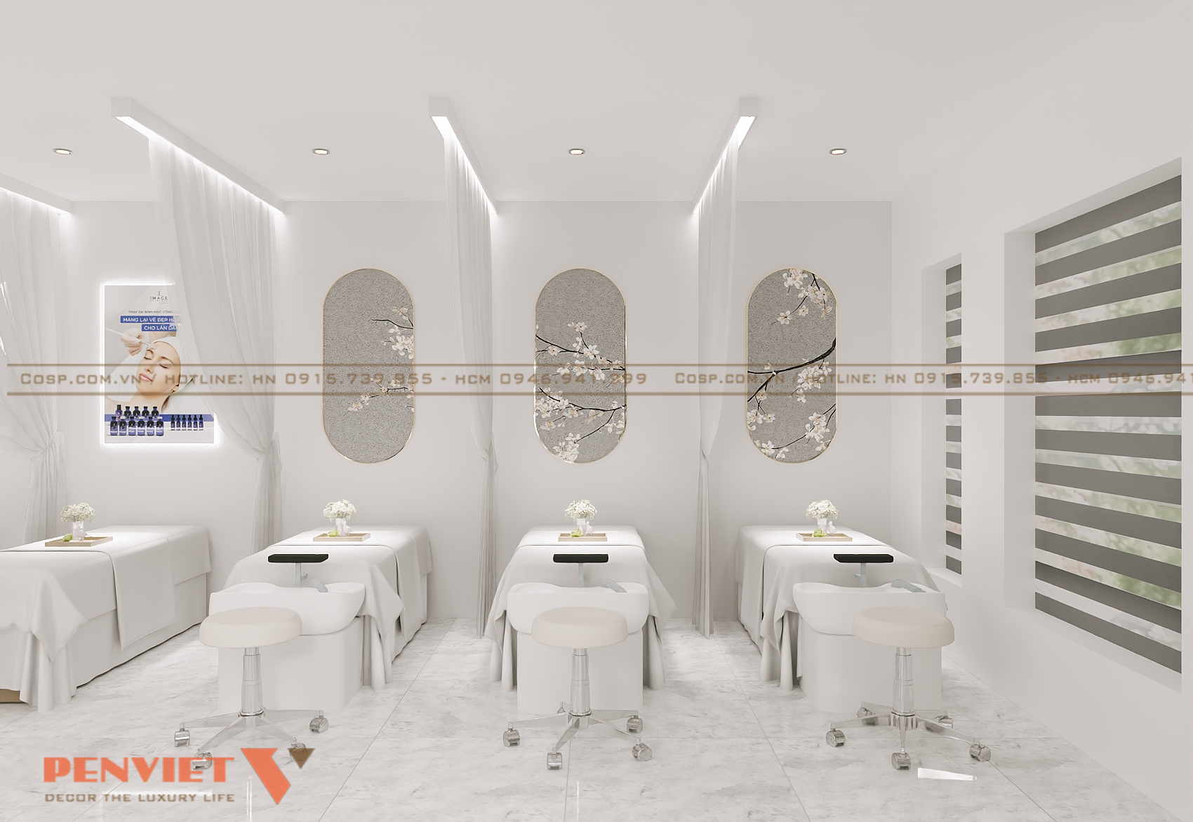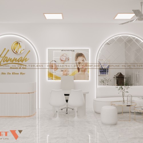 Thiết kế Spa Hannah mang biểu tượng của sự thanh lịch và hiện đại. Nếu quý khách muốn sở hữu không gian kinh doanh ấn tượng như vậy, hãy liên hệ PenViet ngay hôm nay.
