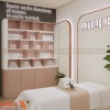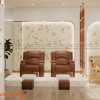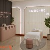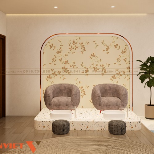 Vách tường trang trí họa tiết nhẹ nhàng, tránh cảm giác nặng nề. Không gian này hướng đến trải nghiệm thư giãn trọn vẹn. Phù hợp với các liệu trình dài và khách hàng cần sự riêng tư.